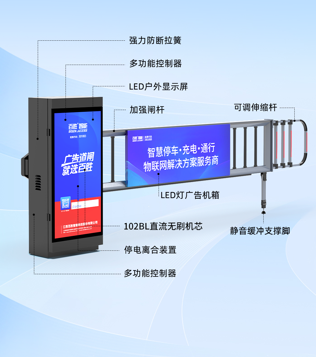 廣告道閘 | 機箱廣告位:980×495mm | 比競品(pǐn)可視麵積大15% |