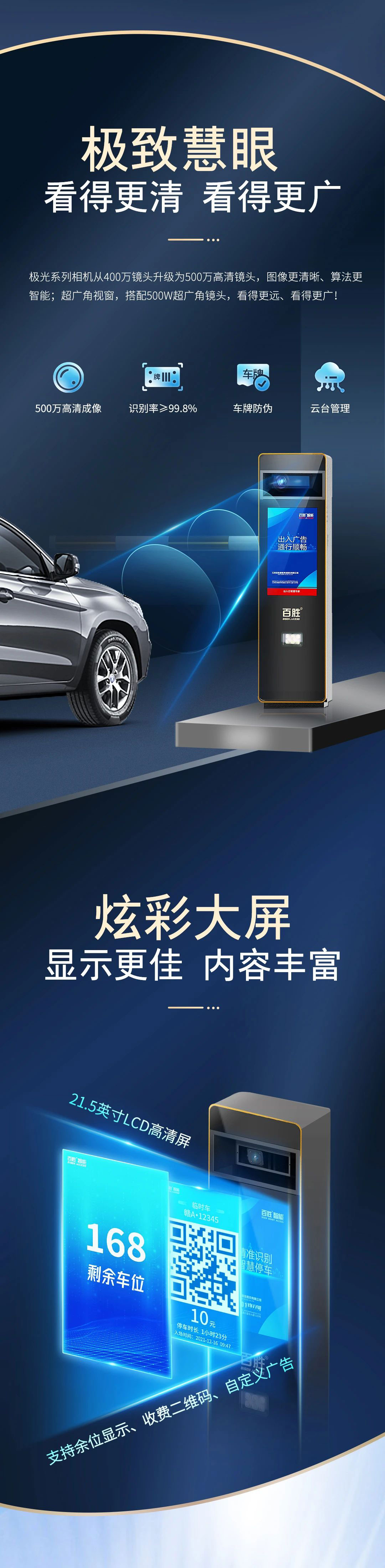 21.5寸LCD高清屏實時顯示車(chē)位剩餘數、支付二維碼(mǎ)、自定義(yì)廣告;